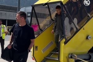 皇马官方晒出阿隆索携球员们走下飞机的视频,确认球队已经抵达奥地利因斯布鲁克。
