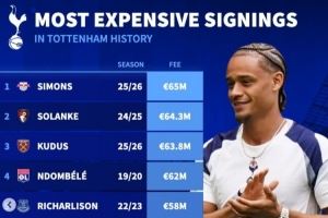 列维热刺生涯最贵引援榜:西蒙斯压索兰克成标王,孙兴慜未进前十