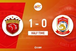 上半场比赛结束,上海海港1-0青岛西海岸。