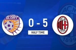 半场-AC米兰5-0珀斯光荣 奥卡福双响17岁科莫托造点+勺子点射