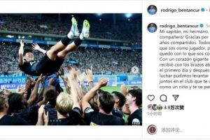 感谢你所做的一切,兄弟,我们在俱乐部会非常想念你!祝你和你的家人在新征程中一切顺利!希望很快能再次相见,传奇!我非常爱你!”