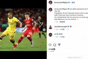 泰拉恰诺写道:“这是我人生中最重要、最有成长意义的经历之一。能够穿上这身球衣,我感到无比自豪;感谢所有队友、教练组以及球迷们,感谢与你们共同度过的每一个时刻。”